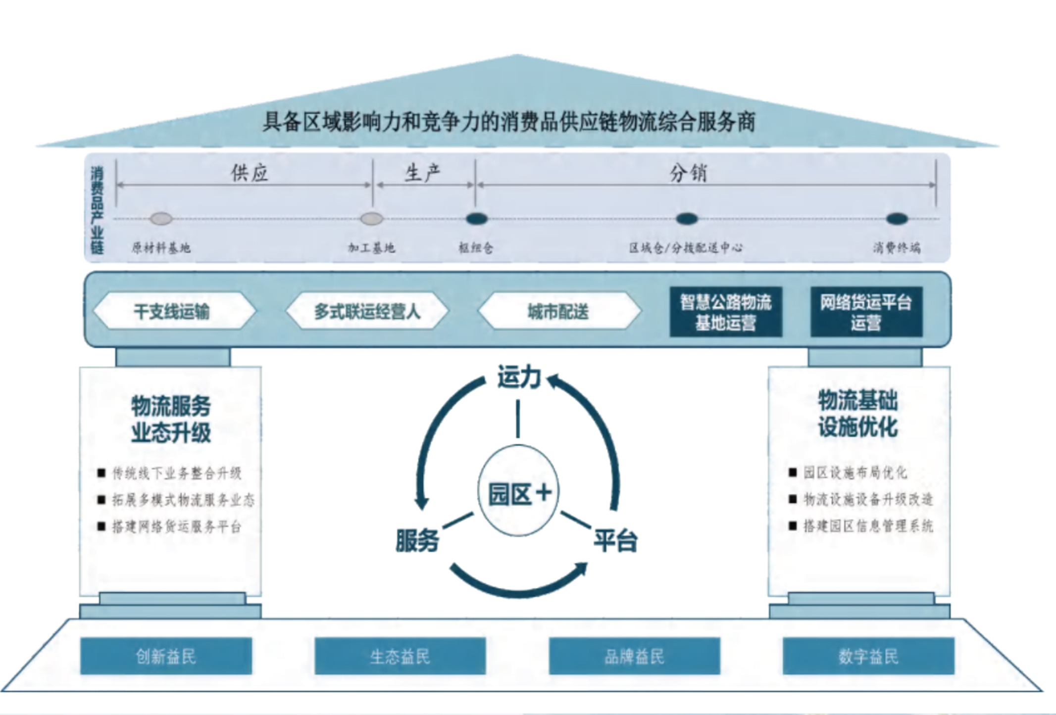 深入挖掘物流企業(yè)自身特性,結(jié)合外部市場(chǎng)動(dòng)態(tài),為尋求企業(yè)的可持續(xù)發(fā)展,提供對(duì)應(yīng)的顧問咨詢服務(wù),并錨定戰(zhàn)略發(fā)展目標(biāo)、選擇發(fā)展路徑與手段,制定長遠(yuǎn)性、全局性規(guī)劃與謀略,實(shí)現(xiàn)物流企業(yè)形象降本增效、提高企業(yè)服務(wù)水平、打造差異化競(jìng)爭(zhēng)優(yōu)勢(shì)。